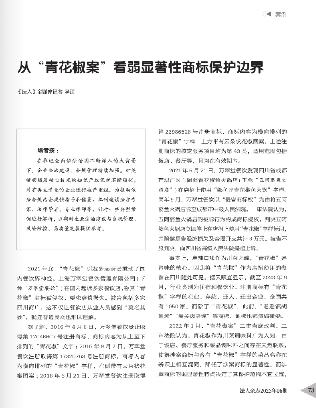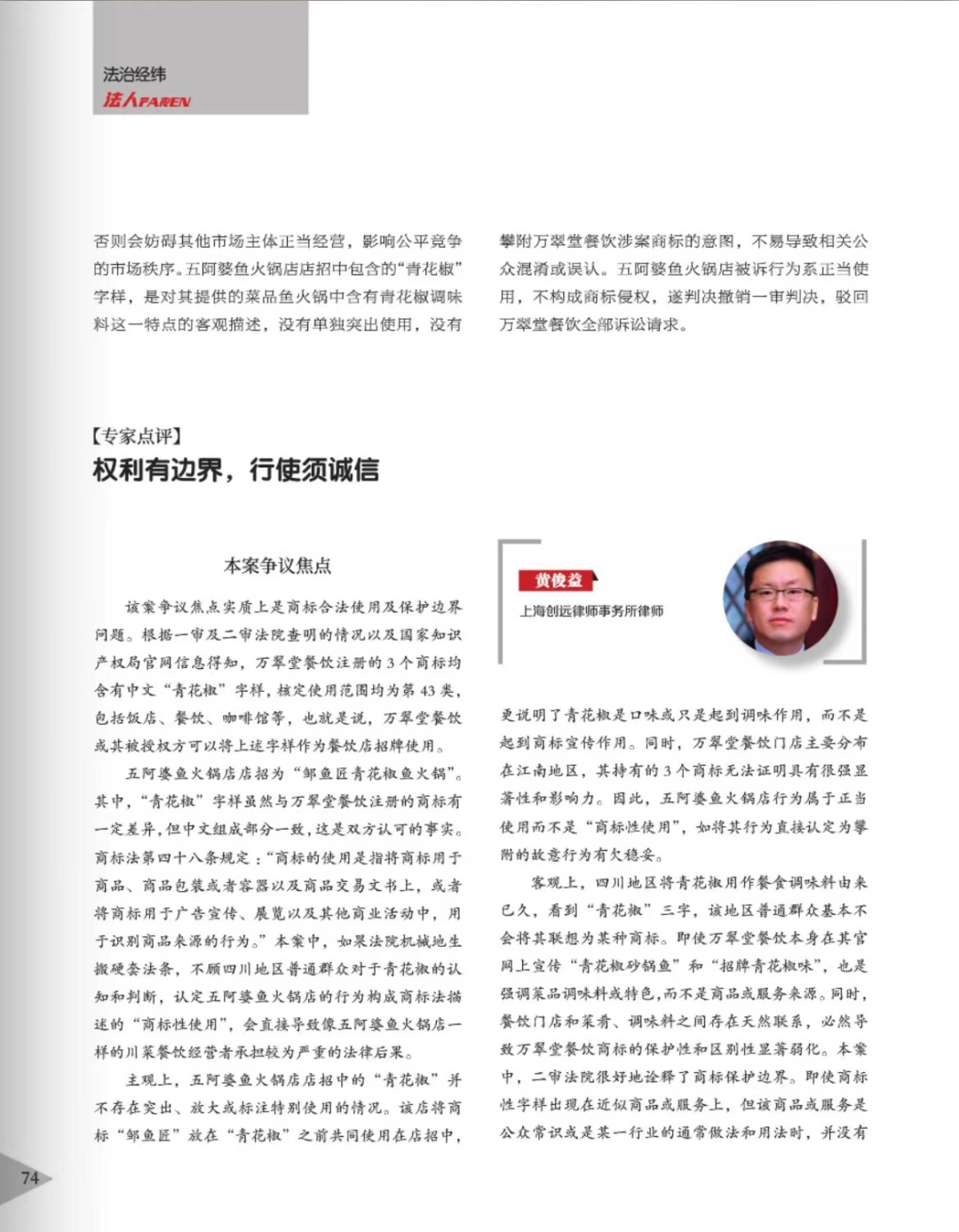 六安辉知简讯 | 辉知队黄俊益律师应“法治日报”旗下杂志邀请,就“青花椒”案发表专家点评